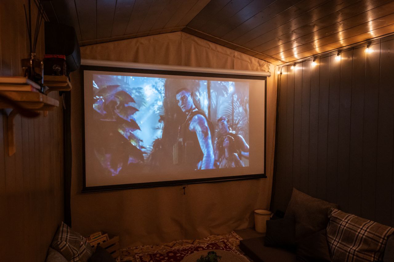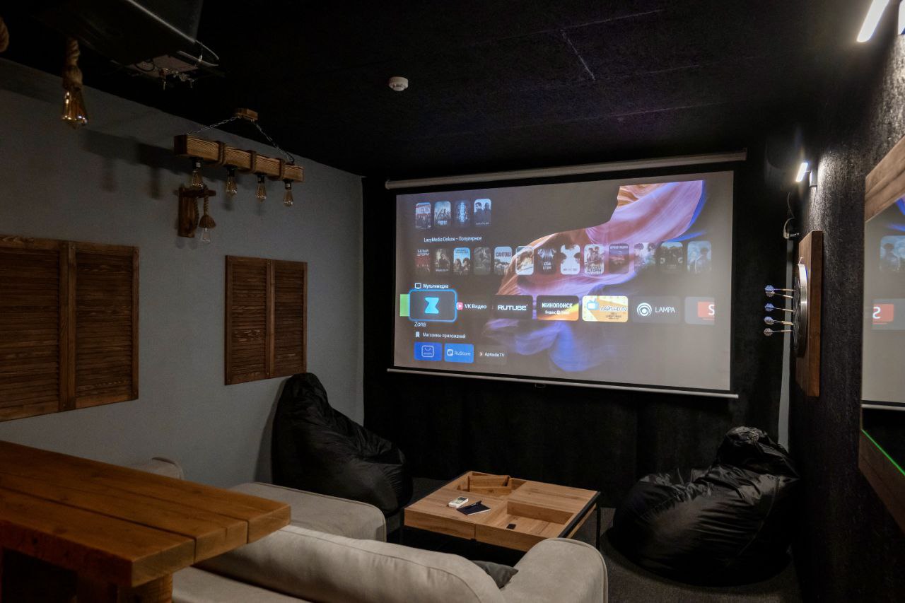 У нас профессиональные проекторы, качественный звук и большой экран. Простое интуитивно понятное управление. Zona, VK Video, Rutub, Кнопоиск, LazyMediaDeuxe -Вы сможете найти любой фильм.