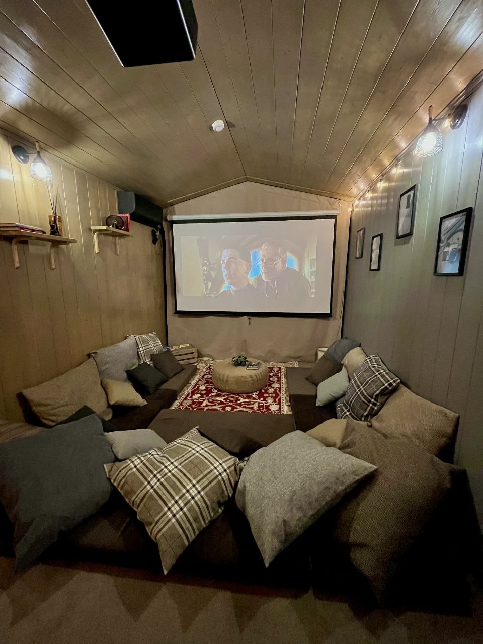 Идеальное пространство для свидания и романтического вечера. Если хотите уютно лежать в обнимку, в пледике, на мягких подушках под свечение гирлянд - Вам сюда. Комфорт, тишина и ваш фильм на большом экране.