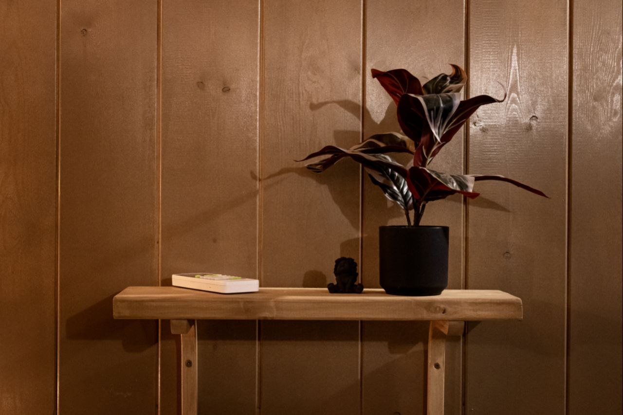 Идеальный вариант для кино-просмотров и просто уютных посиделок в аутентичной обстановке, где можно будет поиграть в настольные игры или PlayStation 5. В комнате расположен диван из эко кожи и 2 больших пуфа.